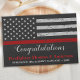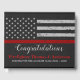 Añada el toque final a su fiesta de graduación de bomberos con este delgado libro de invitados y suministros de fiestas rústicos para la fiesta de graduación de la línea roja de bomberos. El diseño de la bandera estadounidense en los colores de la bandera de los bomberos, angustiado por el diseño falso de cuero. Esta colección de graduación de los bomberos será la favorita. Vea nuestra delgada colección de líneas rojas para hacer coincidir las invitaciones a la graduación de los bomberos, los regalos de los bomberos, los favores de la fiesta y los suministros. DERECHOS RESERVADOS © 2020 Judy Burrows, Black Dog Art - Todos los derechos reservados. Cartel Rústico de la Línea Roja del Partido de Graduación del Bombero