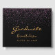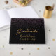 Clase de 20xx, o cualquier año. Para una moderna y moderna celebración de graduación. Un fondo negro de moda con confeti rosa y morado. El texto: El graduado está escrito con un guión de gran tamaño con letras a mano. Plantilla para un nombre y un año. Añade tu propio texto en la columna vertebral.