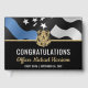 Este diseño incluye una bandera de la fuerza policial con rayas blancas y negras, y una delgada franja azul. Una gran manera de felicitar al nuevo graduado de la academia de policía. Personalizar con el nombre del oficial encargado de la aplicación de la ley graduado en oro. ¡Celebra este hito con estilo!