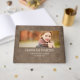 Rústica ropa de cama de color marrón envejecida y libro de invitados de graduación personalizado blanco con tu foto, nombre de la escuela y año de graduación en la portada. Contáctenos para obtener ayuda sobre la personalización y los productos correspondientes.