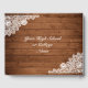 Elegante libro de visitas para la celebración de la graduación. Estilo rústico con un fondo de madera y decoración de encaje blanco. Hay más artículos disponibles en este estilo en nuestra tienda. Puede editar el diseño más adelante, cambiar el color de fondo, las fuentes y añadir texto adicional haciendo clic en el vínculo "Personalizar esta plantilla" y, a continuación, en el vínculo "Hacer clic en el personalizar más adelante".