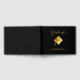 Un libro de invitados elegante y jovencito para una fiesta de graduación de 2021. fondo negro de moda y un tassel abstracto moderno negro en oro falso, con el año dentro. El texto Graduado y el nombre se escriben con un estilo de escritura moderno con letra a mano. Texto dorado. Espina: agrega tu propio texto.