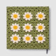 This charming crochet-inspired image features a repeating granny square pattern with white daisies and golden yellow centers on a rich green background. Perfect for lovers of handmade aesthetics, retro floral designs, and cozy cottagecore style. Ideal for use on stationery, home décor, fabric prints, phone cases, or gifts, this design evokes warmth, creativity, and vintage charm. A great choice for crafters, crochet fans, and anyone who appreciates floral textile patterns with a soft, handmade feel.