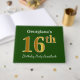 El diseño de este libro de huéspedes incluye el número ordinal "16º" con un aspecto falso dorado. También tiene un nombre personalizado y un fondo de color verde. Se podría usar en un fiesta para alguien que celebre su decimosexto cumpleaños. [~Z0000056]