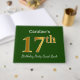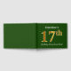 El diseño de este libro de huéspedes incluye el número ordinal "17" con un aspecto de oro falso. También tiene un nombre personalizado y un fondo de color verde. Se podría usar en un fiesta para alguien que celebre su decimoséptimo cumpleaños. [~Z0000056]