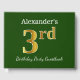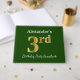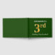 El diseño de este libro de huéspedes incluye el número ordinal "3rd" con un aspecto de oro falso. También tiene un nombre personalizado y un fondo de color verde. Se podría usar en un fiesta para alguien que celebre su tercer cumpleaños. [~Z0000056]