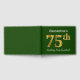 El diseño de este libro de huéspedes incluye el número ordinal "75" con un aspecto falso dorado. También cuenta con un nombre personalizado y un fondo de color verde. Se podría usar en un fiesta para alguien que celebre su cumpleaños setenta y cinco. [~Z0000056]