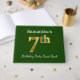El diseño de este libro de huéspedes incluye el número ordinal "7º", con un aspecto falso dorado. También cuenta con un nombre personalizado y un fondo de color verde. Se podría usar en un fiesta para alguien que celebra su séptimo cumpleaños. [~Z0000056]