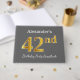 Este libro de huéspedes presenta el número ordinal 42 con un aspecto de imitación de oro. También tiene un nombre personalizado y un fondo de color gris (gris). Podría ser usado en una fiesta de cumpleaños para alguien que está celebrando su 42° cumpleaños. [~Z0000193]