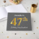 El diseño de este libro de huéspedes incluye el número ordinal "47" con un aspecto de imitación de oro. También tiene un nombre personalizado y un fondo de color gris (gris). Podría ser usado en una fiesta de cumpleaños para alguien que está celebrando su cumpleaños cuarenta y siete. [~Z0000193]