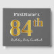 El diseño de este libro de huéspedes incluye el número ordinal "84th" con un aspecto de imitación de oro. También tiene un nombre personalizado y un fondo de color gris (gris). Podría ser usado en una fiesta de cumpleaños para alguien que está celebrando su cumpleaños número ochenta y cuatro. [~Z0000193]