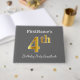 El diseño de este libro de huéspedes incluye el número ordinal "4th" con un aspecto falso/imitación dorado. También tiene un nombre personalizado y un fondo de color gris (gris). Podría ser usado en una fiesta de cumpleaños para alguien que está celebrando su cuarto cumpleaños. [~Z0000193]