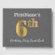 Libro De Visitas Gris, Faux Gold Fiesta de cumpleaños 6 + Nombre pe