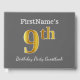 El diseño de este libro de huéspedes incluye el número ordinal "9º" con un aspecto falso/imitación dorado. También tiene un nombre personalizado y un fondo de color gris (gris). Podría ser usado en una fiesta de cumpleaños para alguien que está celebrando su noveno cumpleaños. [~Z0000193]