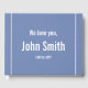 Este respetable libro de visitas funerarias/conmemorativas contiene el mensaje "Te amamos", y el nombre personalizado y las fechas de nacimiento/muerte de la persona que ha fallecido. Se podría usar para registrar deseos solidarios para los parientes y amigos de alguien que ha fallecido recientemente.