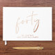 Elevar a su fiesta de 40 años con este elegante libro blanco de visitas que presenta un genuino Relieve metalizado de oro rosa, "cuarenta" en un guión de moda y su nombre con letras modernas. Personaliza tu título en la columna vertebral y cambia el color del Relieve metalizado a plata o oro si lo deseas.