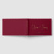 Este minimalista y elegante libro de bodas rojo burdeos presenta su elección de oro real, Relieve metalizado de oro plateado o rosa, sus nombres en un guión moderno de moda, su fecha boda y ubicación en la tipografía serif clásica y su título personalizado en la columna vertebral.