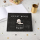 Cute tema de halloween libro de invitados para bebés ducha con ilustracion de un fantasma con corbata de arco. Perfecto para una ducha de niño en otoño.