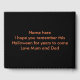 Este hermoso libro de visitas presenta un óvalo naranja con seis cuervos. Cada cuervo tiene ojos amarillos con pupilas negras y alas estiradas. Los cuervos están volando unos hacia otros formando una forma oval. El fondo es negro.