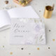 El precioso y amplio libro de oro de la quinceanera floral púrpura presenta un fondo púrpura pastel y delicadas flores acuarelas con un nombre personalizado y mi guión de caligrafía de membrillo.