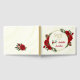 flores rojas románticas y hojas verdes sobre fondo de mármol dorado libro botánico.