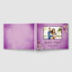 Un hermoso libro de bodas de color morado, usa la plantilla para subir tu foto al diseño. Debajo de la foto está tu nombre presentado con una bonita letra cursiva morada con la fecha de tu boda que se muestra a continuación. En las esquinas superior derecha e inferior izquierda hay un ramo de flores púrpura muy bien presentado. El fondo es un diseño de pergamino morado. Personaliza tu libro de bodas hoy! Foto de archivo: Foto de bruce mars de Pexels