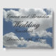 Este es un hermoso libro de bodas de diseño de huellas de nubes azules y blancas para que coincida con tus hermosas invitaciones nupciales impresas.