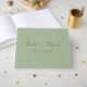 Este hermoso libro de bodas de temática verde es realmente encantador. Con un fondo verde con una fuente marrón. El nombre de la pareja se presenta en un moderno tipo de letra cursiva marrón con la fecha boda debajo de marrón. Personalizar tu libro de bodas hoy!