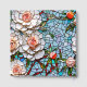 Un magnífico ilustracion que imita un mosaico de cristal y baldosas de rosas de coral y con acentos azules y otros colores. Este elegante libro de bodas tiene una hermosa estética vintage. El nombre y la fecha de boda de Bride y Groom en la impresión metálica de oro rosa.