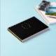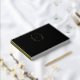 El óvalo monograma deja Relieve metalizado de oro dibujado a mano por el escudo en el libro de bodas negros. Elegante libro de Relieve metalizado dorado y negro para que sus invitados escriban manualmente sus buenos deseos y la esperanza de crear un regalo para que la feliz pareja aprecie para siempre. Hay otros elementos coincidentes disponibles. Presenta el diseño original de hojas de óvalo dibujadas a mano por Sarah Trett para www.mylittleedenweddings.com y www.mylittleeden.com en Zazzle.