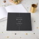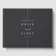 Un hermoso libro de bodas basado en la tipografía minimalista con sus nombres en letras clásicas con un suave fondo negro de ceniza, unido con letras modernas de acento manuscrito.