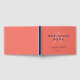 Elegante libro de boda personalizado de color azul marino y coralino con letra de escritura moderna. Personaliza fácilmente en línea. Artículos coincidentes disponibles para este minimalista y elegante libro de bodas en monograma.