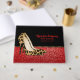 El libro de invitados de un evento de moda es de color negro y con una apariencia purpurina roja, con gráficos de un par de tacones altos de estilete con manchas de jaguar. Personalice los campos de texto para su celebración especial.