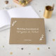 Un boda Kraft & Rustic Guest Book en tonos marrones y blancos y simples adornos: da la oportunidad a tus huéspedes de escribir un mensaje de agradecimiento y felicitaciones a tu boda.