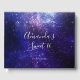 Celebra bajo las estrellas con este libro de fiestas estrellados. Las acuarelas moradas y azules crean el cielo nocturno con una nebulosa brillante en la parte superior. Versátil libro de invitados para cualquier celebración con temas de galaxia que incluya un Sweet 16, Quinceañera, fiesta de cumpleaños, celebración de estrellas de trineo, baile de graduación o regreso a casa, o un evento corporativo nocturno. Disponible con productos a juego.