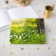 Este diseño presenta una imagen de una hermosa escena boscosa en primavera. El sol brilla y los pájaros tuitean. Bellas margaritas blancas están esparcidas por el verde césped. ¡Todo está bien en el mundo!