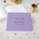 Elegante tipografía clásica serif sobre fondo de lavanda. Aprecie los comentarios y sentimientos de sus amigos y familiares, conservados en su libro de bodas. Sencilla elegancia.