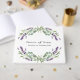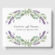 Un elegante fondo blanco decorado con flores de lavanda y vegetación de eucalipto. Personalice y agregue sus nombres y fecha de boda. Espina: agrega tu texto.