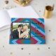 Libro de invitados con un patrón de rayas de azulejos que coincide con los dos flamencos al atardecer que está en la parte trasera del libro. En el frente hay una foto de la pareja feliz que será reemplazada por la verdadera pareja. Utilice las herramientas de recorte y dimensionamiento para ajustar la foto al espacio. Reemplace los nombres y la fecha de los suyos cuando los personalize. Los productos coincidentes están disponibles o transfieren este diseño a otros artículos.