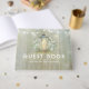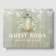 Boda de granero rústico libro de invitados con lámparas de hierro y flores blancas - aliento de bebé