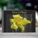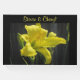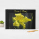 Este elegante libro de huéspedes presenta una impresionante lirio amarillo con un fondo oscuro. El texto se puede personalizar para adaptarlo a sus necesidades. Este libro de visitas se puede usar para bodas, aniversarios o compromisos.