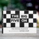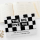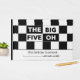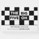 Crea un gran keepsake con un libro de visitas fresco, moderno y personalizable para tu celebración de 50 años. Presenta un audaz patrón de cuadros negros y blancos en la parte superior con las palabras "Los cinco grandes" en blanco alternado sobre texto negro y negro sobre blanco. La parte inferior 1/3 del libro muestra las palabras "Libro de cumpleaños número 50" en texto negro sobre fondo blanco. Personalizar el nombre, fecha y texto en la barra lateral. Un patrón geométrico de cuadros negros y blancos adorna la parte trasera del libro. Copyright © Claire E. Skinner. Todos Los Derechos Reservados.
