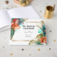 Flipping to the back cover, a serene teal background provides a striking contrast to the vibrant hibiscus artwork, creating a harmonious visual experience from front to back. Against this captivating backdrop, a customizable space awaits, allowing the couples' names, wedding date, and venue location to be elegantly showcased once again. This personalized touch adds a sentimental layer to the guest book, serving as a cherished memento of the special day.