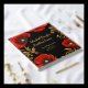 This luxury black, red, and gold floral wedding invitation features an opulent botanical design with rich red poppy-style flowers and elegant gold baroque accents on a deep black background. The dramatic contrast and refined ornamental details create a sophisticated and timeless aesthetic, perfect for formal and upscale weddings.