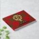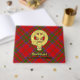 Clan MacDonald de la insignia escudo Keppoch rodeada de una correa y hebilla sobre el fondo tartán. texto frontal, espalda y columna vertebral personalizado.