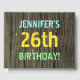 Este divertido diseño de libros de cumpleaños incluye un mensaje como "¡26º CUMPLEAÑOS DE JENNIFER!", donde el nombre puede ser personalizado. El fondo está decorado con un estilo rústico, marrón y falso de aspecto de grano de madera. El texto del mensaje de personalizable presenta colores como azul, amarillo y verde, y tiene un aspecto inspirado en el de las letras pintadas y estampadas. Se puede utilizar un libro de invitados de 26 años como éste para que los clientes de un fiesta puedan dejar mensajes y saludos. [~Z0000320]
