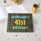 Este divertido diseño de libros de cumpleaños incluye un mensaje como "¡EL CUMPLEAÑOS 41 DE GEORGIANA!", donde el nombre se puede personalizar. El fondo está decorado con un estilo rústico, marrón y falso de aspecto de grano de madera. El texto del mensaje de personalizable presenta colores como azul, amarillo y verde, y tiene un aspecto inspirado en el de las letras pintadas y estampadas. Un libro de visitas con temas de cumpleaños como este podría ser usado para que los asistentes puedan dejar mensajes en un fiesta que está siendo retenido por alguien que está celebrando su cuarenta primer cumpleaños. [~Z0000320]