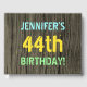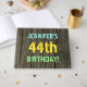 Este divertido diseño de libros de cumpleaños incluye un mensaje como "¡44º CUMPLEAÑOS DE JENNIFER!", donde el nombre puede ser personalizado. El fondo está decorado con un estilo rústico, marrón y falso de aspecto de grano de madera. El texto del mensaje de personalizable presenta colores como azul, amarillo y verde, y tiene un aspecto inspirado en el de las letras pintadas y estampadas. Un libro de visitas con temática de cumpleaños como este puede ser usado para que los invitados puedan dejar mensajes en un fiesta que está siendo retenido por alguien que está celebrando su cuarenta y cuatro años. [~Z0000320]