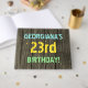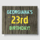 Este divertido diseño de libros de cumpleaños incluye un mensaje como "¡EL CUMPLEAÑOS 23 DE GEORGIANA!", donde el nombre se puede personalizar. El fondo está decorado con un estilo rústico, marrón y falso de aspecto de grano de madera. El texto del mensaje de personalizable presenta colores como azul, amarillo y verde, y tiene un aspecto inspirado en el de las letras pintadas y estampadas. Un libro de visitas con temática de cumpleaños como este puede ser usado para que los invitados puedan dejar mensajes en un fiesta que está siendo retenido por alguien que está celebrando su vigésimo tercer cumpleaños. [~Z0000320]