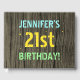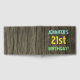 Este divertido diseño de libros de cumpleaños incluye un mensaje como "¡21º CUMPLEAÑOS DE JENNIFER!", donde el nombre puede ser personalizado. El fondo está decorado con un estilo rústico, marrón y falso de aspecto de grano de madera. El texto del mensaje de personalizable presenta colores como azul, amarillo y verde, y tiene un aspecto inspirado en el de las letras pintadas y estampadas. Un libro de visitas con temas de cumpleaños como este podría ser usado para que los asistentes puedan dejar mensajes en un fiesta siendo retenido por alguien que está celebrando su 21º cumpleaños. [~Z0000320]
